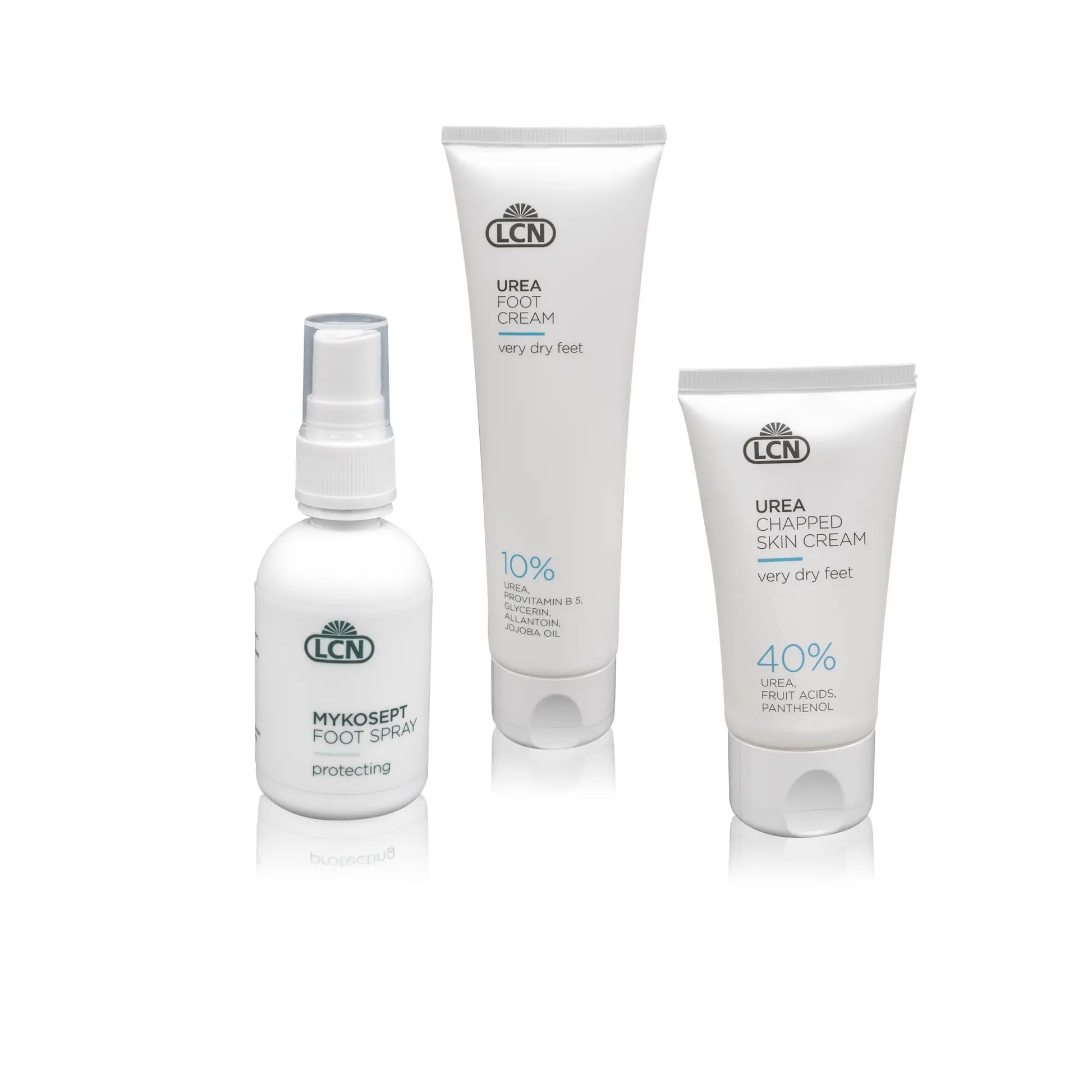 LCN Fußpflege Kombipaket (10% Urea + 40% Schrundencreme + Mykosept Spray)